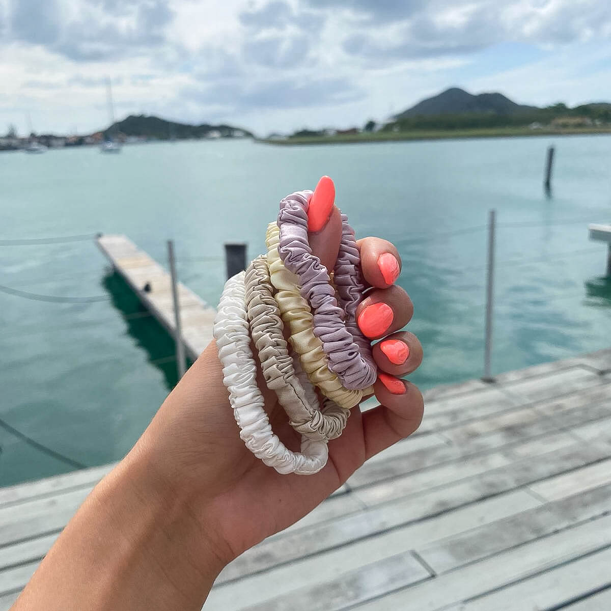 Our best-selling skinny scrunchies are perfect for getting that tight, high pony look without the damage! Hand-made with pure mulberry silk, our skinnies give your hair the protection & nourishment it needs.